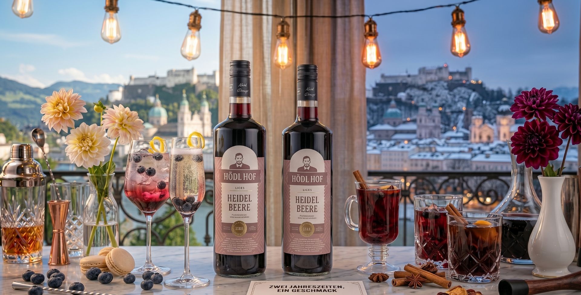 Auch optisch bleibt die Heidelbeere ein starker Begleiter durch alle Jahreszeiten, denn ihr tiefes Violett-Blau wirkt im Sommer frisch und modern und im Winter edel und festlich. Farbwirkung und Stil gehen hier Hand in Hand und lassen sich durch passende Dekoration sowie die Wahl der Gläser zusätzlich unterstreichen, sodass sich der Aperitif harmonisch in das Gesamtbild der Hochzeit einfügt und den jeweiligen Saison Look perfekt ergänzt.